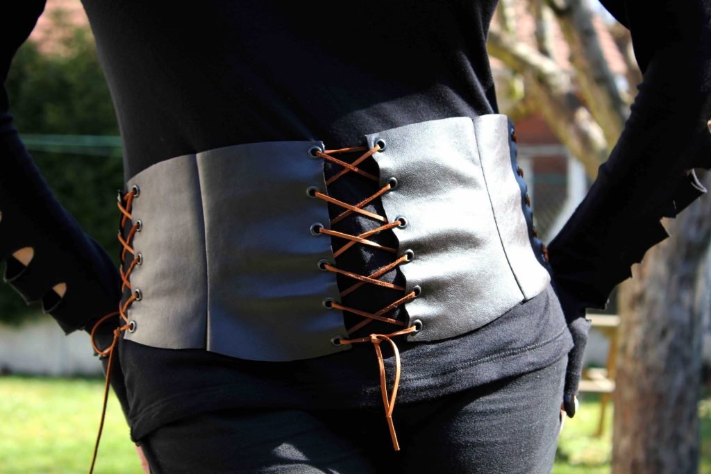 Voici une petite ceinture en simili cuir, avec des lacets cuir. J’ai voulu tester un tour de hanches un peu tribal. Ca n’a pas eu le rendu escompté mais ce fut tout de même une belle surprise. C’est un accessoire très sympa sur une tenue casual unie, toutefois pas très pratique à enfiler !